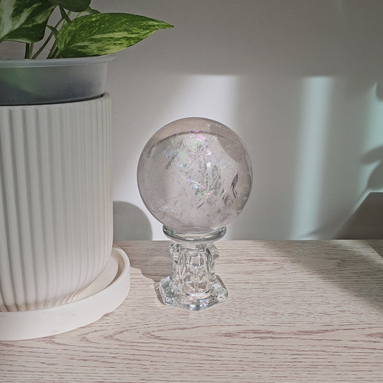 Clear quartz is known for its neutrality and amplifying qualities, often appreciated for bringing clarity, balance, and focus into a space. This piece is not a flawless, museum-grade sphere, but a well-balanced one, where beauty, authenticity, and price meet thoughtfully.