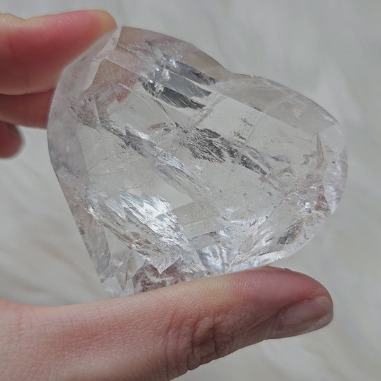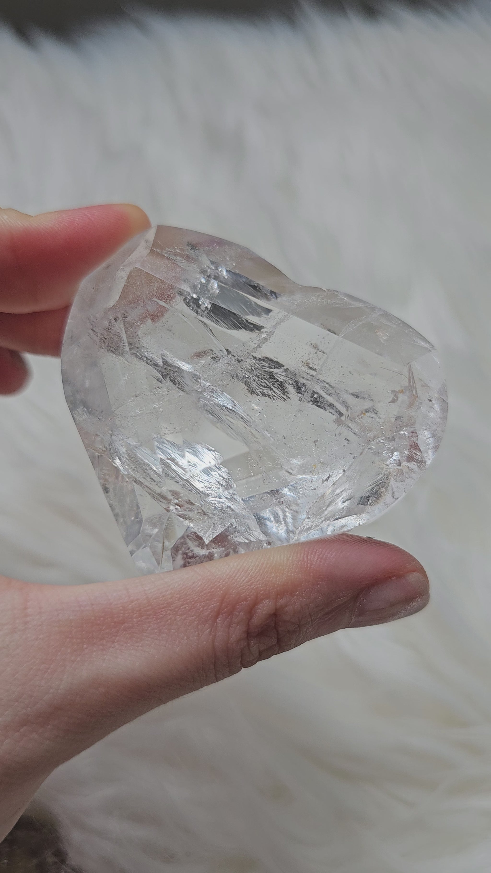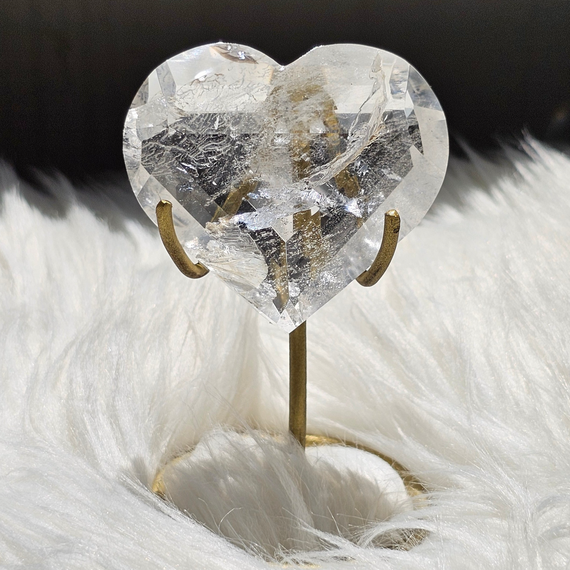 Immerse yourself in the enchanting beauty of the individually hand-carved Faceted Lemurian Quartz Heart. Each facet is expertly carved to reflect light and enhance the crystal's inherent beauty. This batch is flown in directly from Brazil.