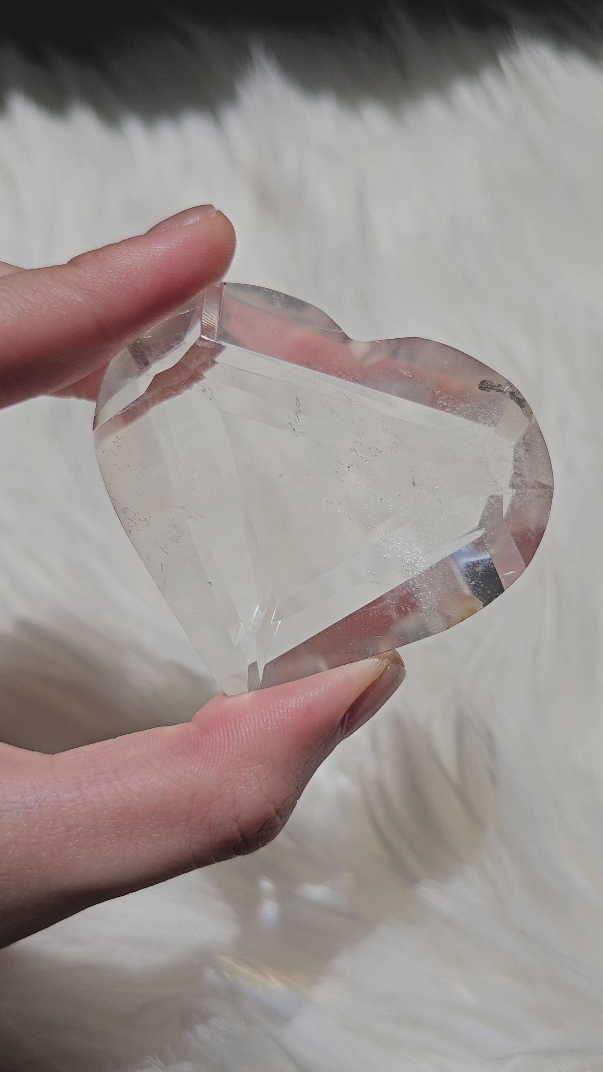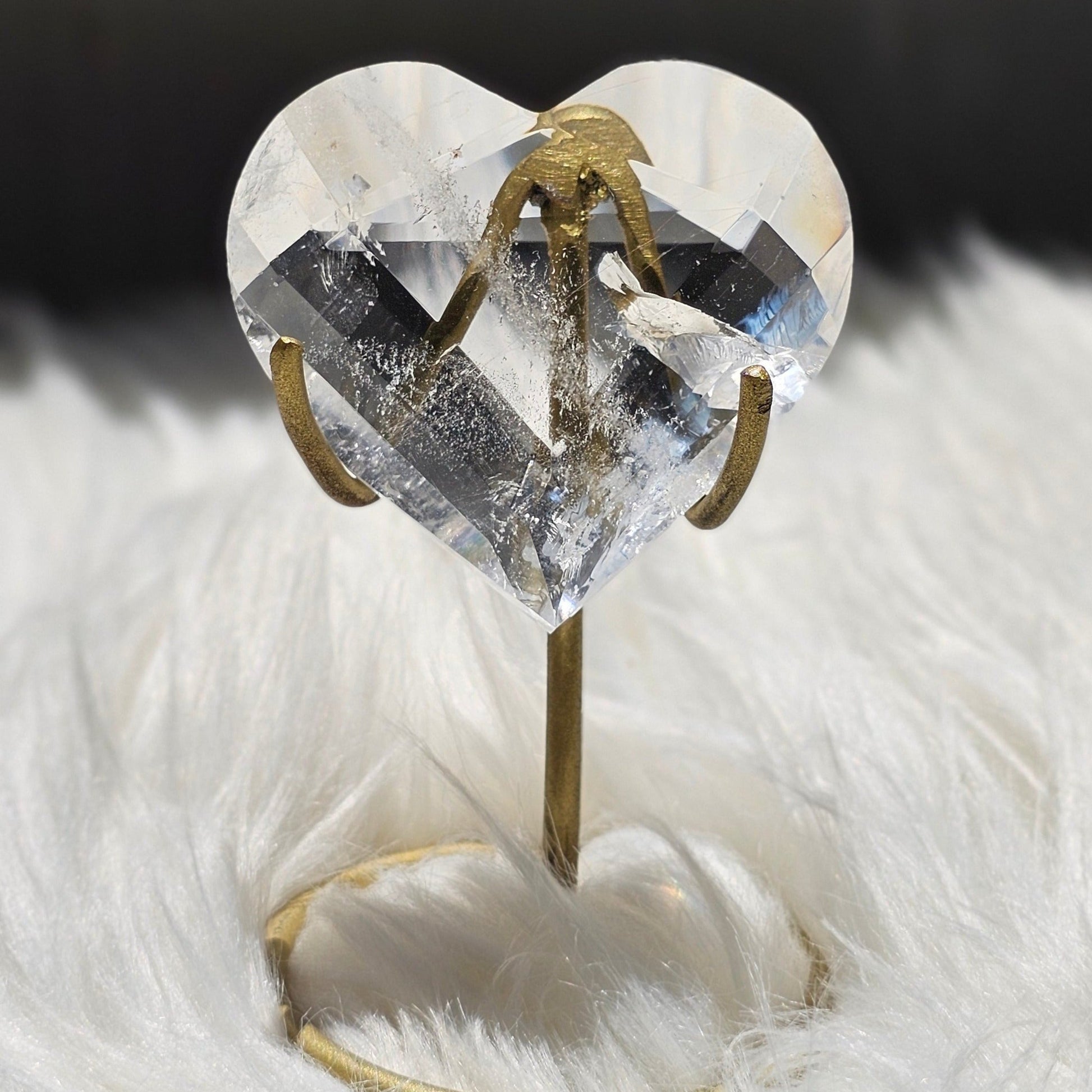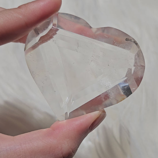 Immerse yourself in the enchanting beauty of the individually hand-carved Faceted Lemurian Quartz Heart. Each facet is expertly carved to reflect light and enhance the crystal's inherent beauty. This batch is flown in directly from Brazil.